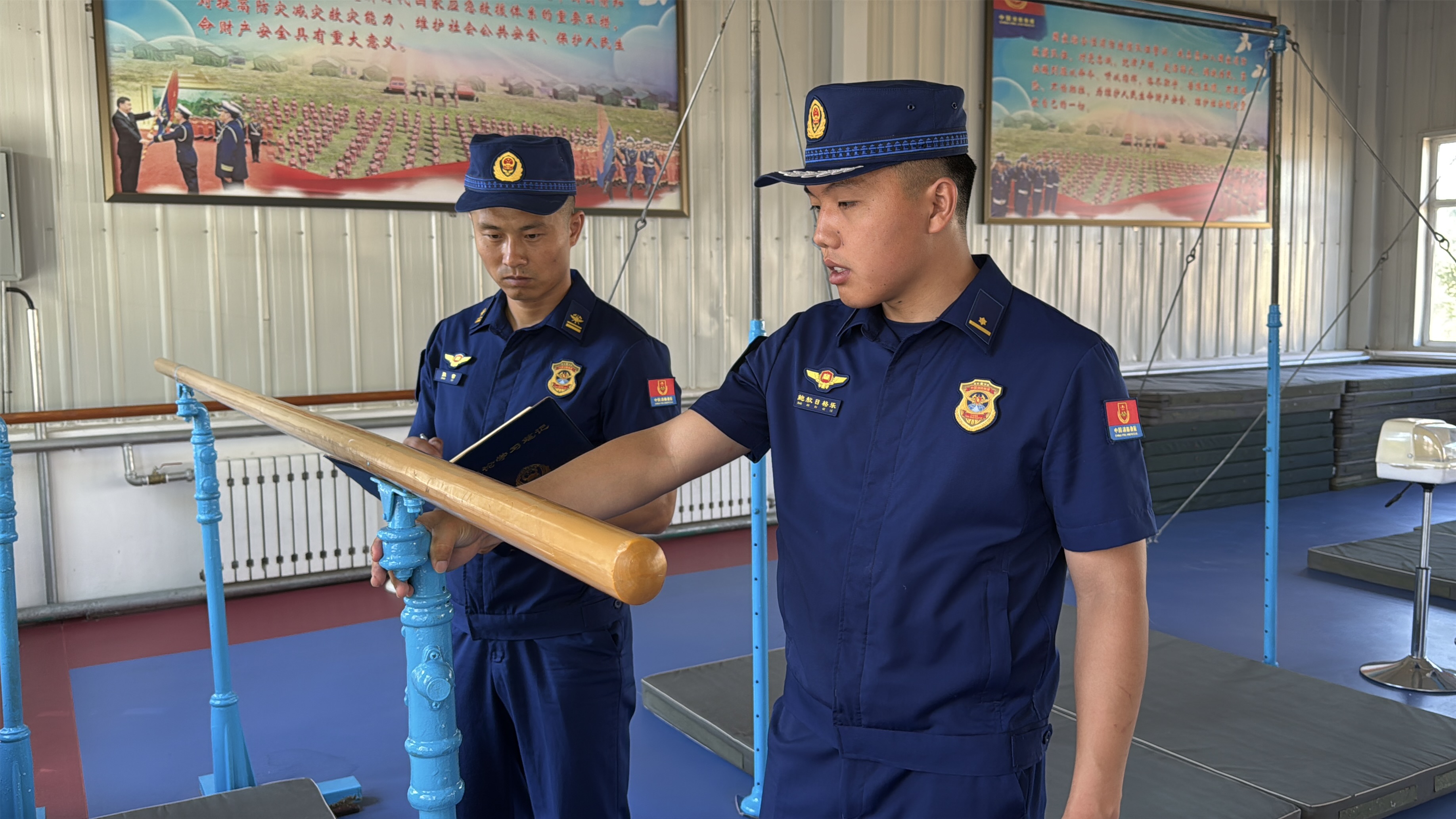 “器械要定期检查,及时上油和拧紧螺丝,避免危险发生”,无论是跑步还是器械训练,强有力的安全保障始终是前提。训练前,中队安全员严格落实检查程序,逐一查验训练器材的可靠性。