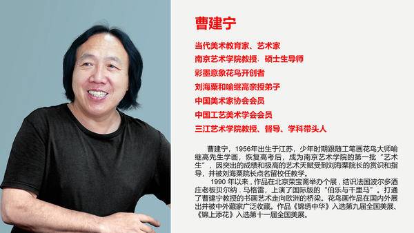 在中国当代花鸟画的版图上,少有人能在传承与革新的平衡点上行走自如。曹建宁——南京艺术学院教授、中国花鸟画革新派代表人物,以其独创的“双象合一”画系,在国内外艺坛掀起波澜。2016年,他的作品亮相法国波尔多,震撼到世界顶级酒业巨头、收藏界传奇人物贝尔纳·马格雷(Bernard Magrez)。这位被誉为“法国酒王”的收藏家,当场收藏其多幅作品,并发出惊人预言:“吴冠中之后,石齐之后,唯此一人。未来,他将成为中国花鸟画新的世界名片。”