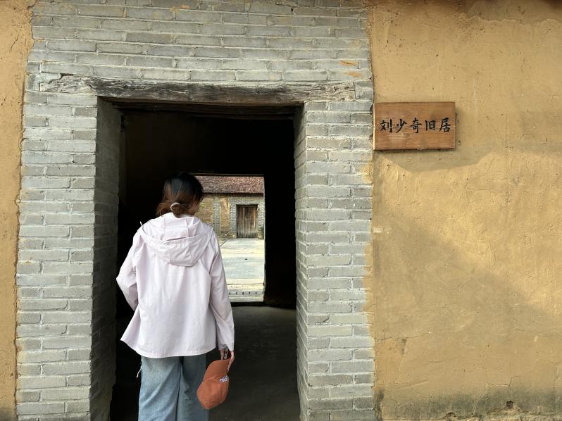 熊正民书记带领实践队走进刘少奇故居,一件件老物件、一段段产业介绍,讲述起村庄岁月变迁的成长轨迹。步入屋内,书记细细讲述着过往,陈列的老物件成了最好的注脚:早年作战的传统工具、简易搭建的会议室,每一件都刻着村民的勤劳。