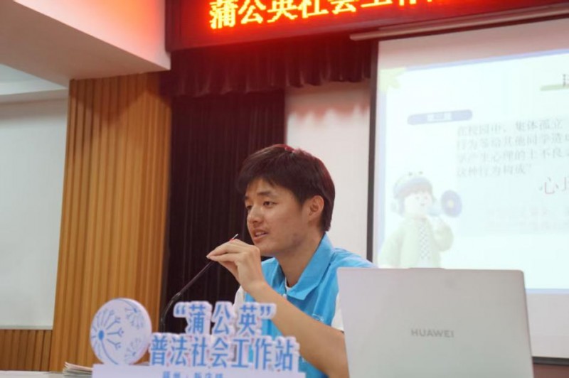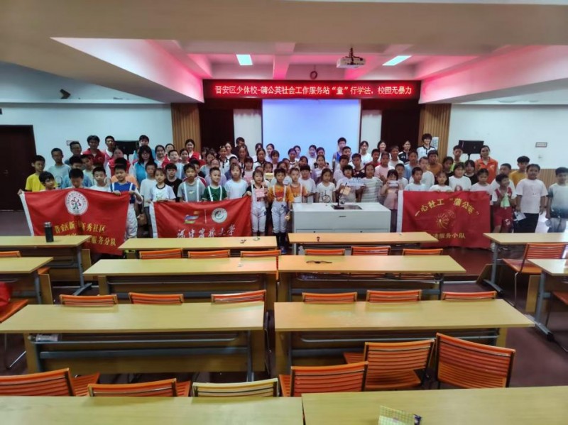 在晋安区青少年校外体育活动中心,实践队于近日联合福州市一心社工、新店司法所及新秀社区居委会,开展“‘童’行学法・校园无暴力”活动。