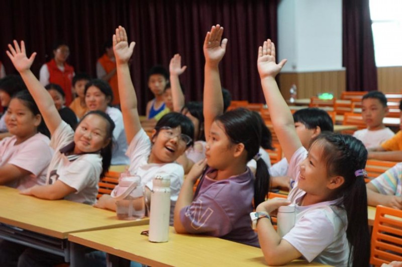 图为互动环节孩子们踊跃回答问题。林筱琪摄