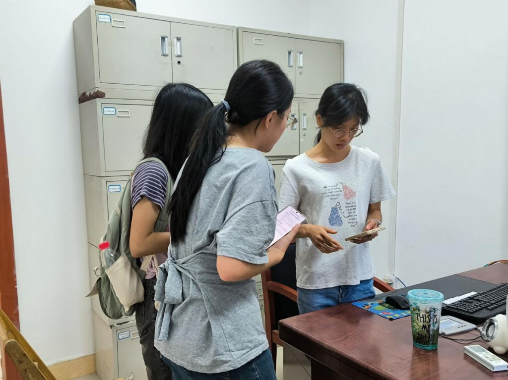 图为团队成员与文化馆工作人员交流。张茹芸 供图