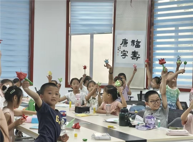 如今,托管班的墙上贴满了孩子们的作品:稚嫩的书法、五彩的拓印、折纸郁金香组成的“花海”,每一件都承载着夏日的记忆。当志愿者与孩子们围坐在一起,分享21天的收获时,社区负责人感慨道:“‘向阳花开’不仅是一个托管班,更是青年反哺社会的生动实践。”