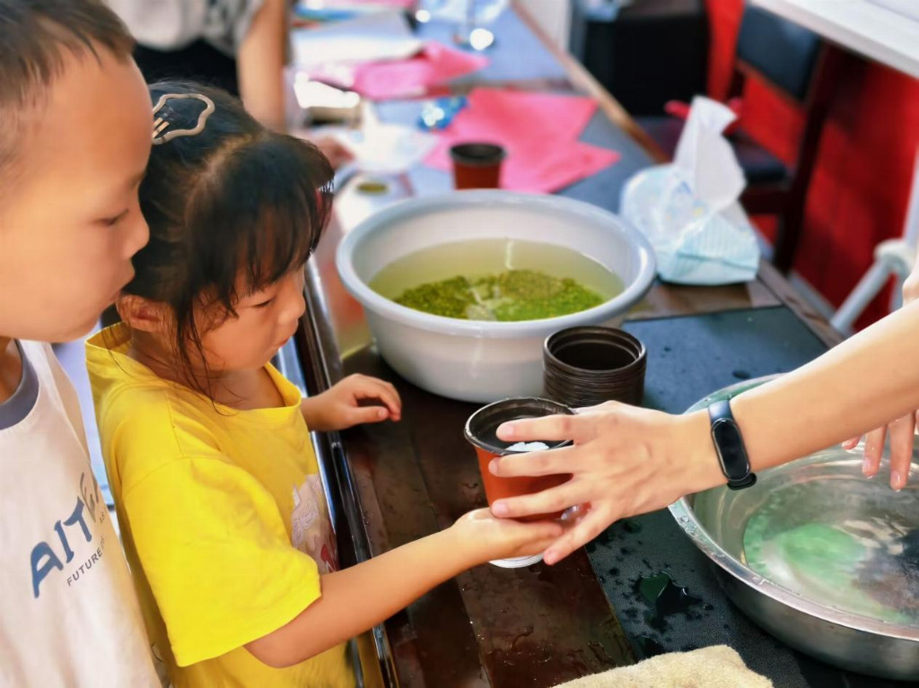 团队紧扣儿童认知规律与成长需求,构建“思想引领、科学启蒙、美育实践与乡土体验”四维课程框架。爱国教育课程《小英雄王二小》以红色故事厚植家国情怀;科学实验课《光学、力学的认识》《“水的奇妙旅程”》通过趣味实验激发探索精神;创意手工《石膏娃娃彩绘》《黏土捏捏乐》、艺术课程《自我画像》《歌曲鉴赏》充分释放儿童想象力;生活实践课《三天小农场》通过生豆芽、植物观察等环节,引导儿童感知生命成长。课程设计注重知行合一,如结合当地自然资源开展的“小溪生态探索——摸螃蟹”户外实践,让孩子们在亲近自然中学习生态知识。