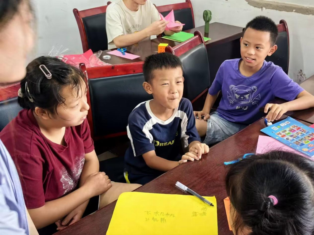 志愿者采用“沉浸式互动教学”模式,打破传统课堂边界。开营破冰环节通过“逛三园”游戏、手工折纸迅速拉近师生距离;“藏宝袋”书信计划搭建双向情感沟通桥梁;分组协作制与“小队长”自主管理模式有效提升儿童团队意识与领导力。从初见时的陌生试探,至结营时的不舍相拥,在这十天里,团队与孩子实现了双向奔赴。孩子们于课堂中追求知识、在互动中不断成长,将好奇转化为探索的动力;团队以陪伴传递温暖,把教案变为充满童真的对话,使名扬村的夏日成为知识扎根、梦想发芽的成长之地。这段旅程,是支教团与孩子们共同书写的夏日故事,更是一场关于热爱与成长的双向奔赴。待回忆泛起回甘,满是温暖与力量。