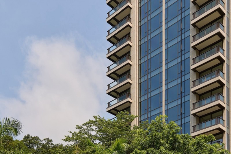 采用大量天然石材打造,高效隔热,打造豪宅气派。玻璃幕墙设计,采用有色双层中空玻璃,高透光、低反射性防紫外光,得天独厚,私隐十足。