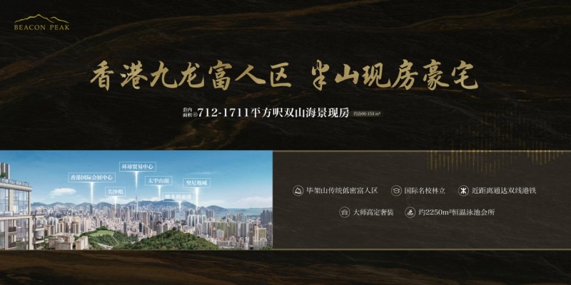 Beacon Peak,系2022年以来,香港九龙豪宅区“最高" 、"最大"新盘,以”双冠王“姿态,定义九龙顶豪新封面。重新勾勒着九龙顶豪的价值边界。约66-158㎡的双山海景现房,不仅是一处居所,更是对峯层生活的精准注解——在这里,低密生态与璀璨都市无缝交织,国际教育与便捷交通触手可及,大师定制的空间美学与全维奢配的生活场景,共同构筑起属于少数人的理想栖居。