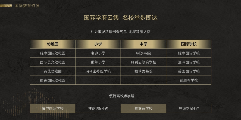 顶流名校:从耀中国际学校、蔡继有学校、喇沙小学等天团级私校,到美国、澳洲国际学校,14所顶流优校林立,幼、小、中、国际全龄段覆盖,步行可达的顶配教育矩阵。