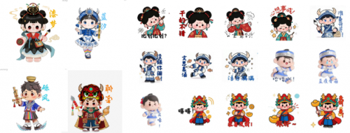 团队设计为4种非遗设计了4个IP形象及配套表情包,毕节市文化广电旅游局采取四种IP,同时团队完成12张主题海报、4套明信片。笔记本、帆布袋、钥匙扣、手机壳等10类首批文创样品已打样完毕。