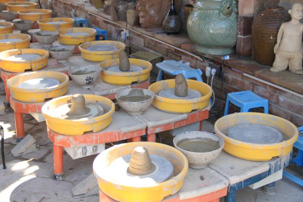 离开博物馆后,实践队来到王家瓷坊进行访谈,这座传承六代的手工工坊至今保留着耀州窑最完整的传统制瓷技艺。工坊工人向队员们展示了从原料到成品的核心工序。