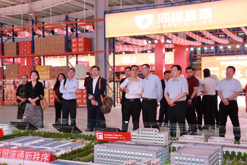 中银国际董事长刘敏(右三)与中国银行河北省分行行长段忠辉(右四)一行参观同福中心仓