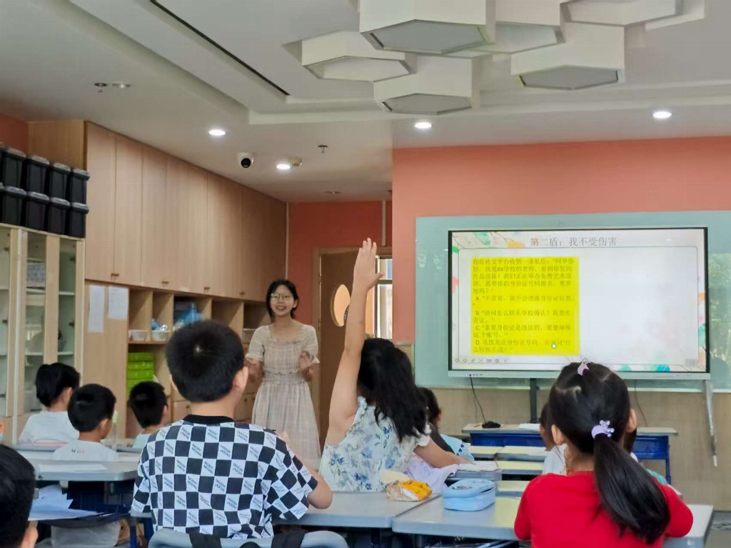 当天上午,团队在温岭市青少年宫为二年级学生带来“双盾探险家,闯关安全岛”互动主题课程。课堂上,学生们通过解读漫画案例、绘制守护星图等形式,深刻理解了尊重他人和保护自我的重要意义。