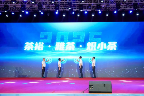 仪式上,雅安市国资委副主任李小宇、勐海县人民政府副县长高宇、雅茶集团董事长古劲、茶裕集团董事长徐海峰共同登台,通过启动屏联动完成新品发布。随着启动指令发出,“炽小茶”茶裕系列新品(糯香普洱、桂花普洱)正式亮相,现场掌声热烈,标志着勐海普洱茶在即饮化、年轻化创新领域迈出实质性步伐。