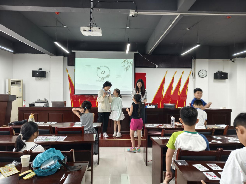 在同学们学完草药知识后,汪玉娟和赵齐雪带领孩子玩草药速配对游戏,在玩中让孩子们复习巩固了今日学的知识。本次七彩假期草药配对——中草药知识小讲堂顺利结束,孩子们掌握了一些草药诸如茯苓、金银花等的功效。( 徐帆)
