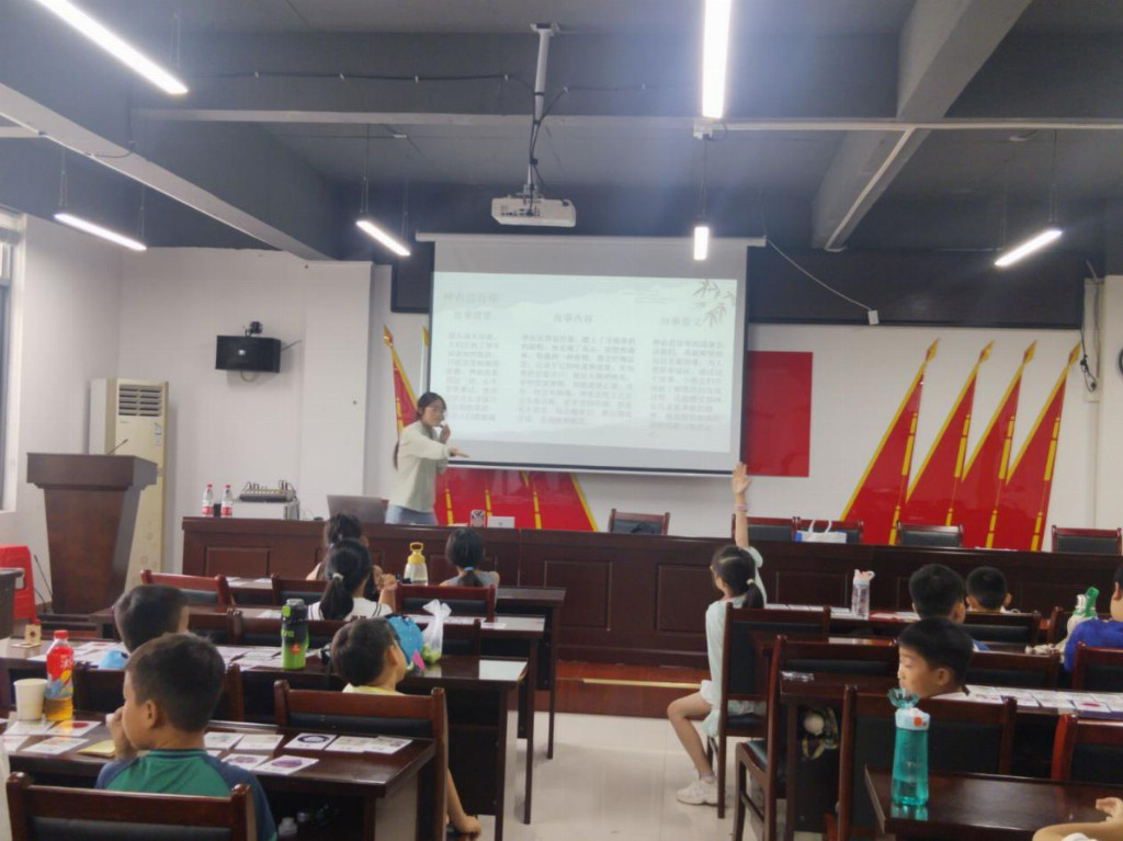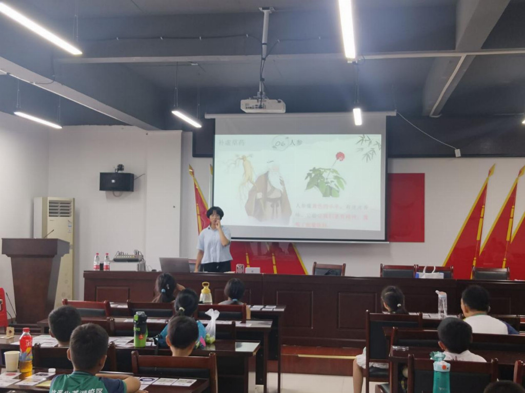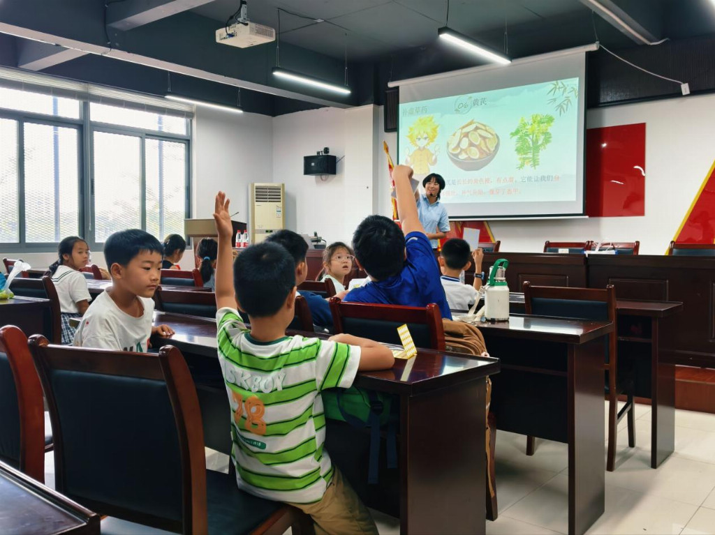 志愿者徐帆带领学生们深化中药知识课堂互动现场 通讯员吴雅供图
