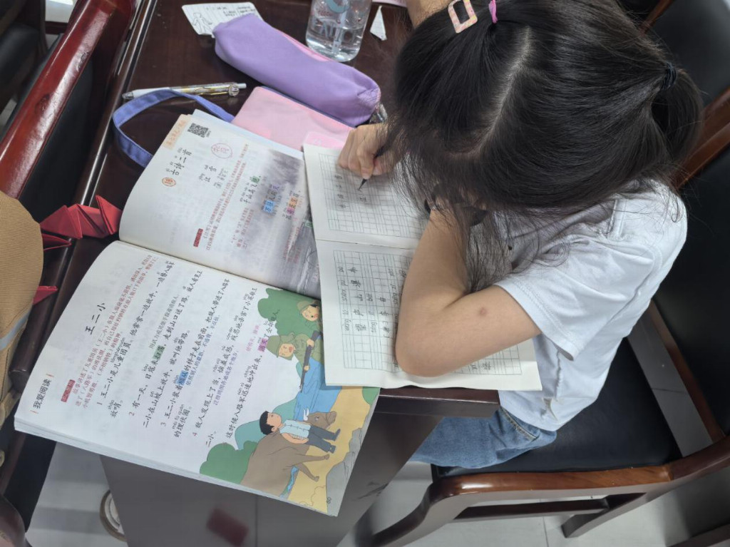 全体志愿者辅导学生写作业,8月11日社区实践服务圆满完成。也有突发情况,鲁彦熙同学受凉呕吐,两个志愿者去照顾他,一位通知总负责人,总负责人立刻联系社区负责人让家长把孩子接回家休息。本次社区服务是非常有意义的,志愿者锻炼了自己,同学们收获了新知识。其中志愿者对于突发情况的处理是非常经典的。(徐帆)