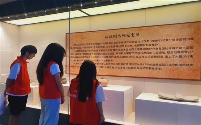 7月30日,塔里木大学“胡杨学子戍边行·兵团精神界碑铸”三下乡社会实践团队走进图木舒克市屯垦戍边博物馆,在与历史展品的近距离接触中,回溯屯垦戍边的壮阔历程,感悟兵团精神的深厚底蕴。