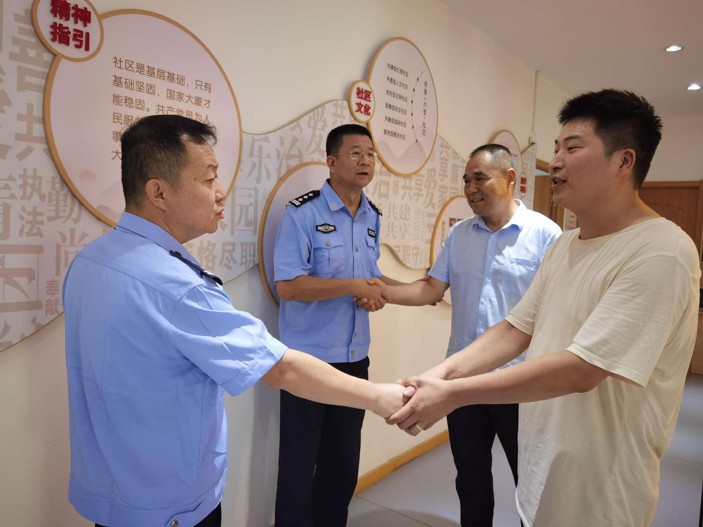 在东尚社区“暖心警务会客厅”里,还有一个备受居民欢迎的地方——茶话会矛盾调解室。这里,组建了以警社力量为主体,区检察院、法院、司法所、公益律师等多方参与的矛盾纠纷化解专班。每周三的“解忧星期三”民情开放日活动,更是成为居民与民警面对面交流、共话和谐的固定时刻。墙上醒目的“有事说一说、没事谝一谝、凡事好商量、小事请原谅”,让人感到暖心。