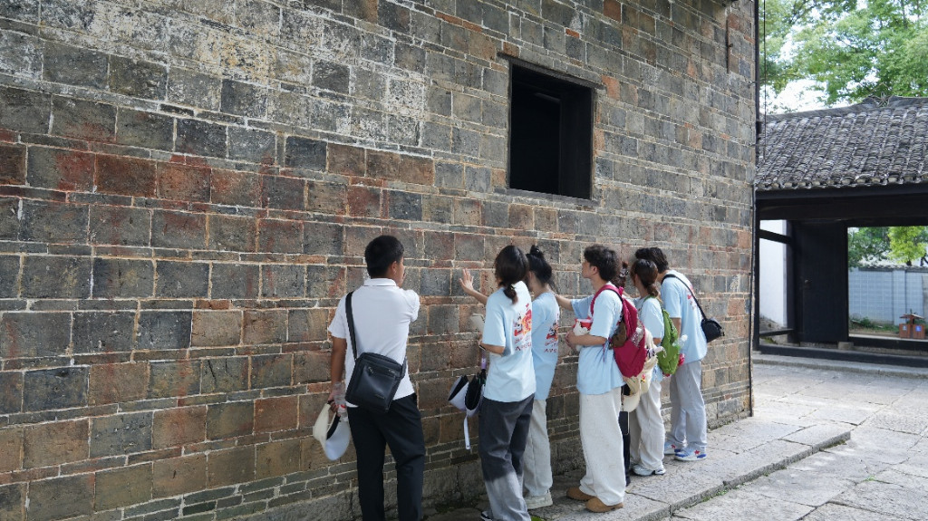 实践团成员轻抚故居墙壁,王华灵供图