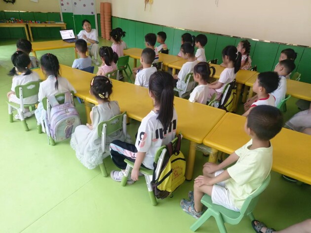 2025年7月20日下午三时,山东中医药大学“七彩筑梦,星耀护航”志愿服务队在山东省德州市禹城市湖滨花园方正幼儿园开展"听国粹故事,种健康种子"的中医药文化启蒙活动。58名大班孩童与4位教师端坐台下,在弥漫着淡淡草药清香的氛围中,开启了一场纯粹而深刻的文化聆听之旅。