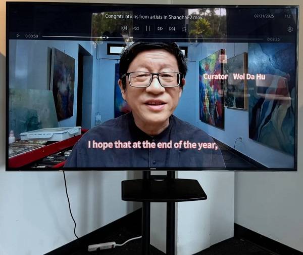 本次展览策展人之一、上海抽象画会副会长胡伟达视频致辞
