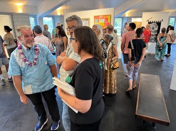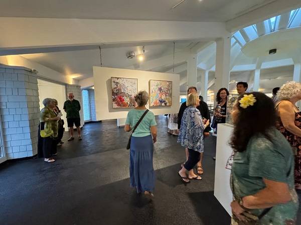 夏威夷WAILOA艺术中心是一座具有重要文化意义的艺术场馆,位于夏威夷希洛的Wailoa河州立休闲区,为两层、12面的建筑。设有3500平方英尺的主展区。此次展览布置得十分精心,布展者没有按照两地展览的惯例,分开两个展区,而是将上海和夏威夷两地的画家,根据颜色、构成、符号、形式的类同,来对比性布展,真正做到了两地画家作品的无缝交流。这样的展览受到了参加开幕式近两百名来宾的欢迎。