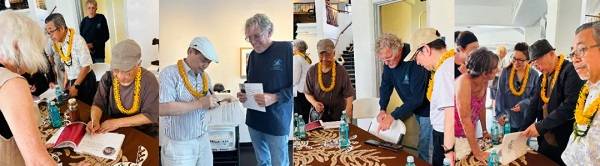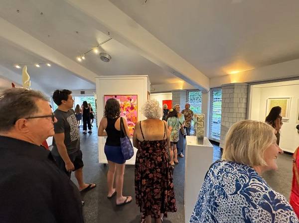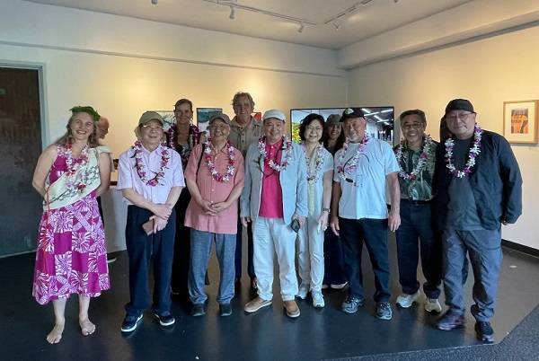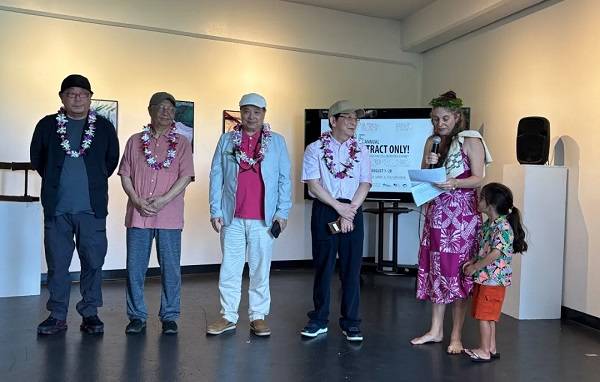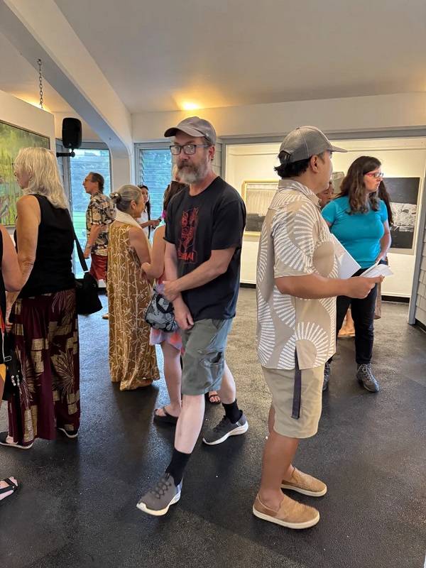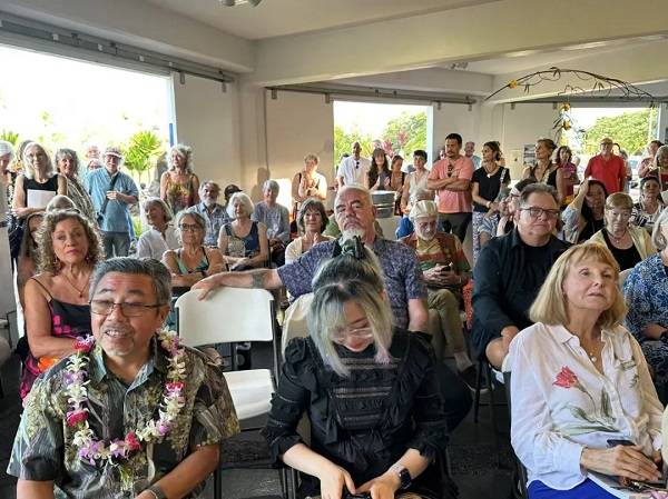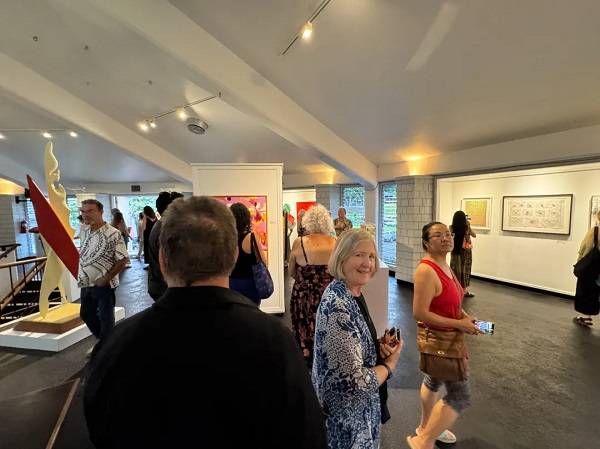 夏威夷岛艺术家联盟主席伊馮娜.维尔伯格,总策划、美籍华裔著名画家姜明立,策展人、WAILOA艺术中心馆长艾苿莉·洛伊希特,美方展览总评审、美籍日裔画家格伦·正雄·山野,画家鲍勃·丹谢·道格拉斯等一百多位来宾和来自上海的艺术家们一起出席了开幕式。