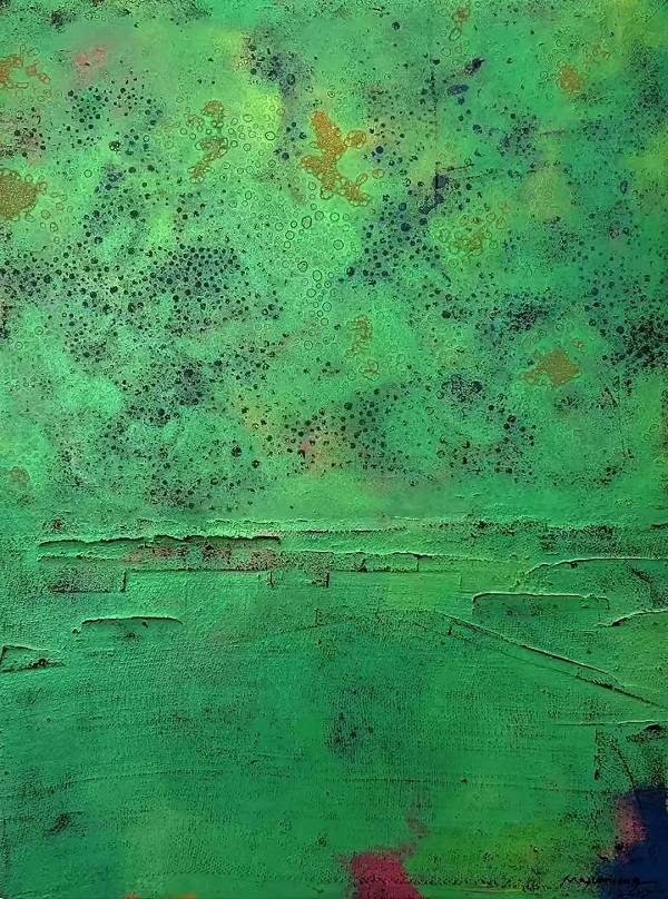 蒋正根 Jiang Zhengen点苔 木板布面丙烯 53+40cm 2013