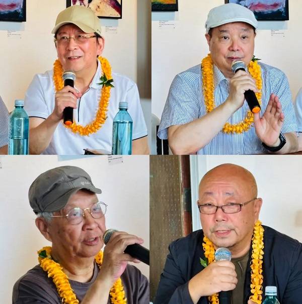 MINGLI JIANG(姜明立,美籍华裔艺术家,此次画展的总策划之一、赞助商)、格伦·正雄·山野、Mary Milelzcik 玛丽·米莱齐克,Hope Delaney 霍普·德拉尼在研讨会上发言