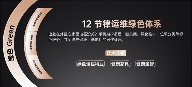 出差在外担心家里电器没关?手机APP远程一键关闭。绿化维护、垃圾分类等绿色服务,共同维护健康、低能耗的居住环境。