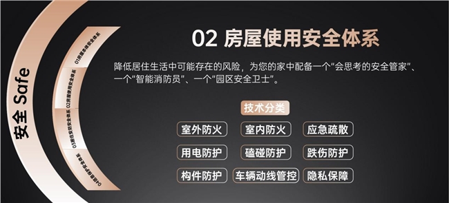 通过房屋本体安全体系、房屋使用安全体系、居住安防安全体系、信息保护安全体系四大技术价值体系,构筑了一张“无形的网”,保障业主安居乐业。