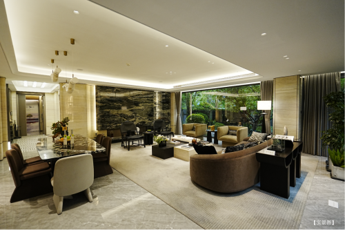 同时,雁南云境以“四进归家”的匠心礼序,将日常仪式升华为尊崇体验。一进“鸿雁展翅”南大门,二进酒店式会客大堂,三进约35米水景长廊,四进自然水幕瀑布,层层递进,每一步都尽享尊崇礼遇。