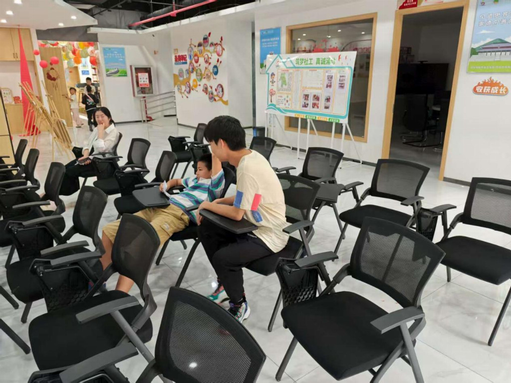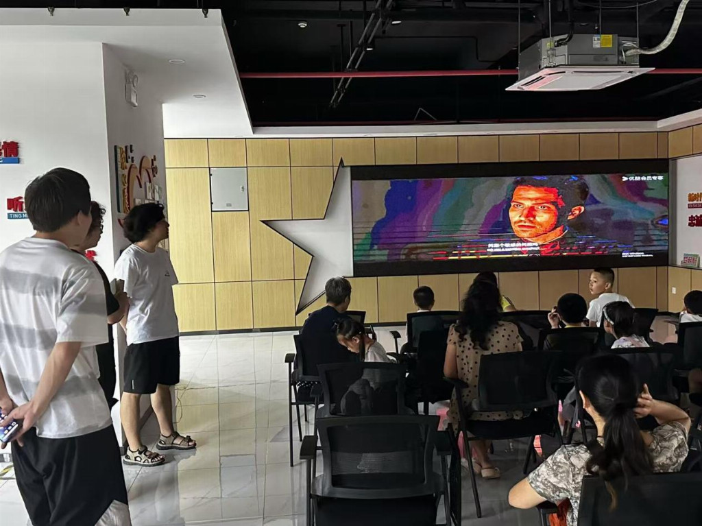8月12日,活动在西湖路街道综合文化站的多功能厅拉开帷幕。在街道文化站精心安排的影厅内,孩子们集体观看了电影《红星照耀中国》。影片以真实的历史影像与感人故事,展现了革命年代中国共产党人与人民群众的血肉联系,以及理想信念的伟大力量。观影过程中,孩子们全神贯注,被革命先辈的坚韧与牺牲深深触动。当看到红军战士不畏艰难、奋勇向前的画面时,现场多名学生情绪激昂。观影结束后孩子们意犹未尽,与实践团成员们积极互动询问影片中的相关内容。