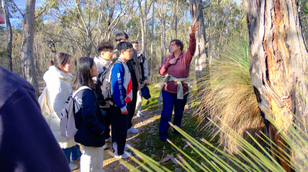 践行知行合一理念,探索野外实训真谛。实践团队聚焦当地特色植被,尤其是被誉为“澳洲生命符号”的桉树。从千年古木的腐朽痕迹到新枯树木的生态循环,团队成员通过观察不同衰变阶段的植被特征,学习了桉树在湿地碳循环中的关键作用。