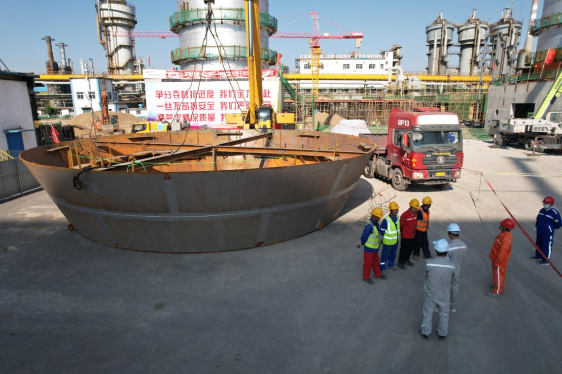 此次吊装的第四段扩容椎体,是干熄炉结构中的核心构件之一。该椎体底部直径超过9米,上部直径扩展至12余米,独特的渐扩设计不仅增大了干熄炉的容积,有效提升了红焦与循环气体的接触面积,还优化了气体流动路径,促进热量的充分交换与回收。椎体成功就位为后续设备安装和投产奠定良好基础。