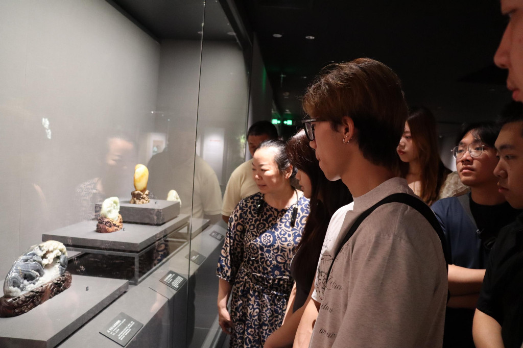 随后,实践团前往扬州非遗珍宝馆,领略扬州玉雕的独特魅力。江苏省技能大师工作室领办人,江苏省工艺美术大师,江苏省非物质文化遗产(扬州玉雕)传承人时庆梅老师为团队成员介绍了玉雕技艺。一件件玉雕作品造型逼真、栩栩如生,从选材到雕琢,每一步都凝聚着匠人们的心血与智慧。交流的过程中,同学们深刻体会到扬州玉雕在传承中不断创新的精神,以及对传统文化的深刻诠释。