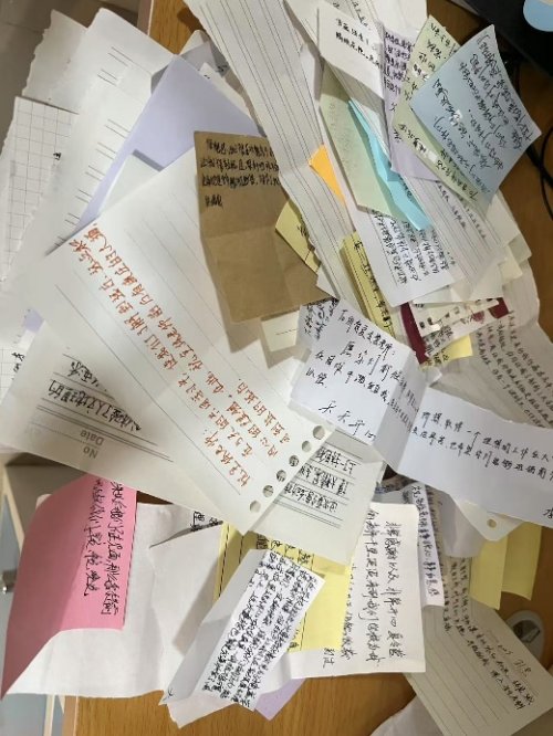 图为学生们赠送给实践队成员的感想小纸条。段昱希 供图