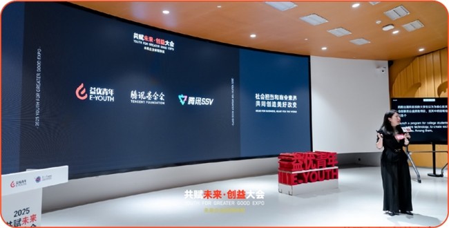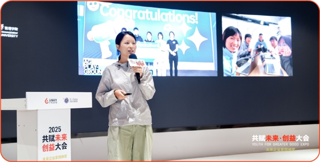 闭幕式现场,任敏正式宣布:益优青年将携手腾讯SSV、腾讯基金会于 2025 - 2026 学年共同支持大学生在公益与社会创新领域推动具备社会价值的 AI 项目。