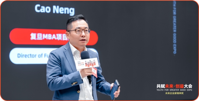 今年,益优青年与复旦大学管理学院联合举办 “共赋未来·创益大会”。2025“共赋未来·创益大会”未来企业家精神奖,将目光聚焦在那些拥有足够坚定的决心和动力推动项目长期可持续发展的项目团队上。复旦MBA项目主任曹能亲临总决赛现场并发表致辞。