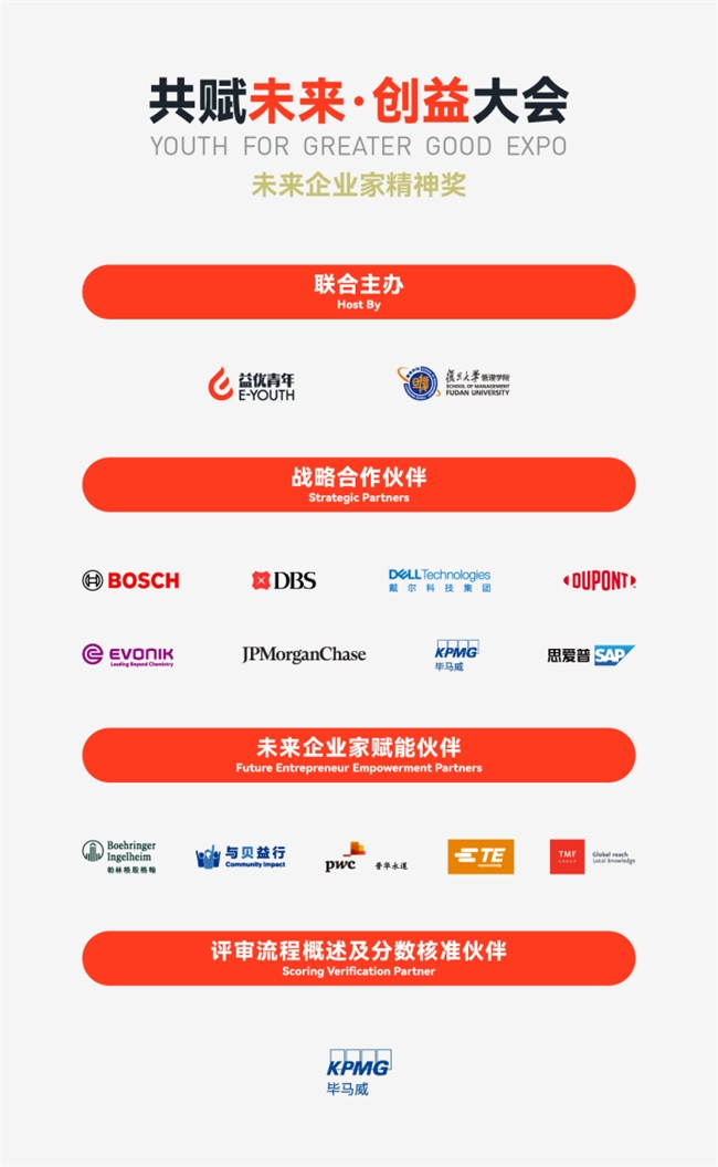 *本次“共赋未来·创益大会”未来企业家精神奖的冠军及亚军团队将获得全球企业家俱乐部EOA加速器全年学习计划、社会创新国际学习之旅往返机票各 1 张。