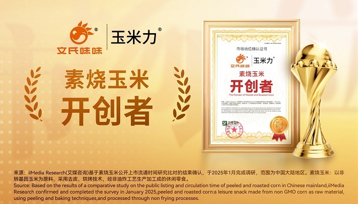 在这样的市场环境下,各大品牌加速迭代创新,试图在激烈竞争中抢占先机。而始于1988年的文氏味味,通过对素烧玉米这一细分品类的深耕与突破,旗下核心品牌玉米力斩获“素烧玉米开创者”市场地位确认,以非油炸、轻烘焙的独特定位,在休闲零食赛道中“破圈”。