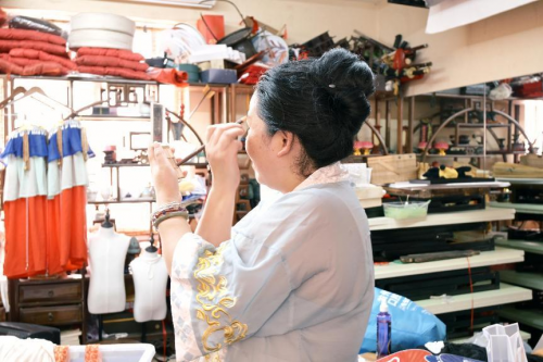 图为成员向乱弹老师请教服饰祥纹知识 宋可歆供图