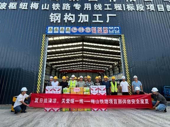 入夏以来,宁波地区持续高温,为切实保障一线施工人员的身体健康和作业安全,宁波梅山铁路专用线项目经理部精心组织开展 “夏日送清凉,关爱暖一线” 活动,为坚守在施工岗位的员工送去关怀与清凉,筑牢夏季施工安全屏障。