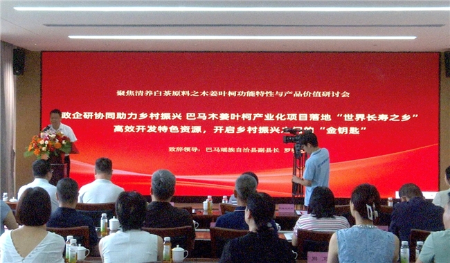 本次会议由政府、学界、业界三方联合推动,来自巴马瑶族自治县人民政府、北京中医药大学专家、杭州三叶康生物科技有限公司、巴马苗瑶堂生物科技有限公司等代表齐聚一堂,共同见证以木姜叶柯为核心原料的降糖茶饮——“清养白茶产业化项目”正式落地,标志着巴马特色资源转化与乡村振兴实践再次迈出关键一步。