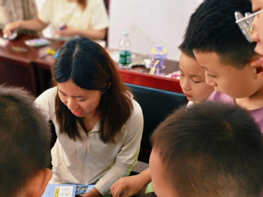 图为团队成员华兴琳为小朋友们讲解书籍内容