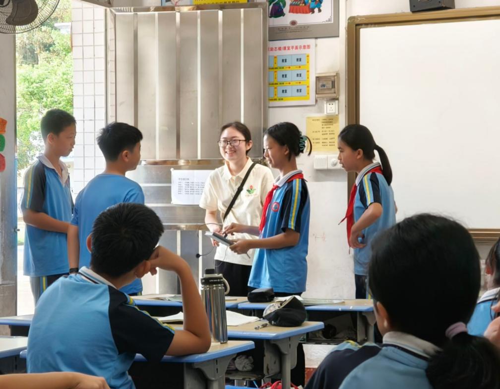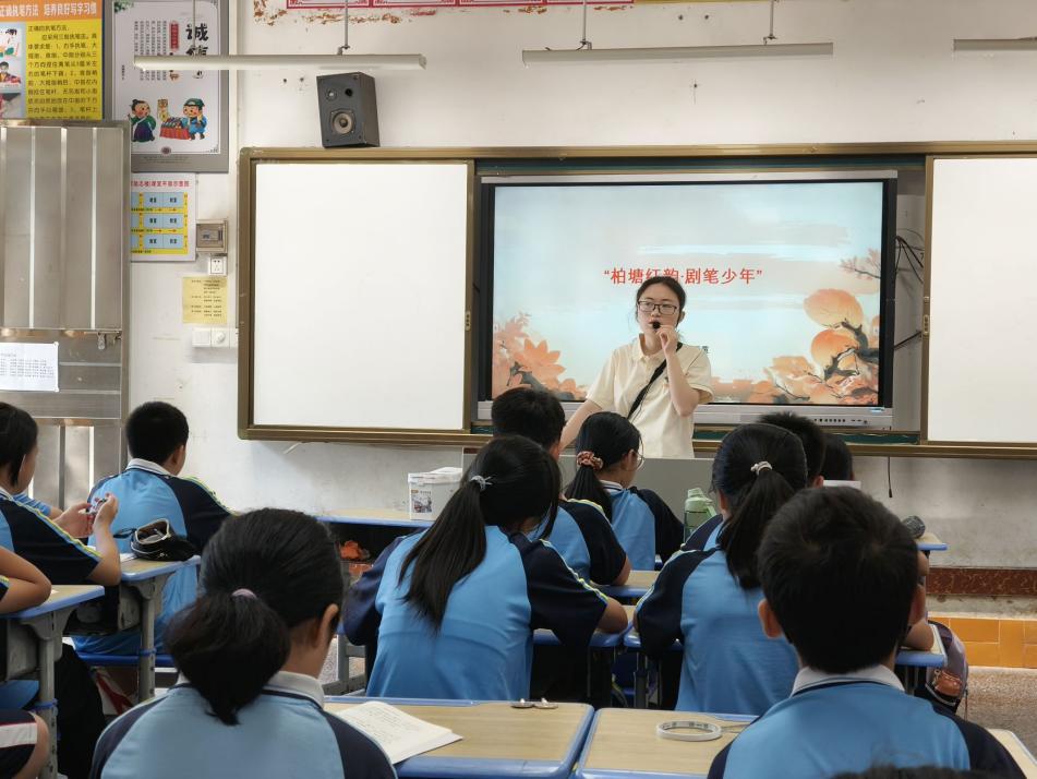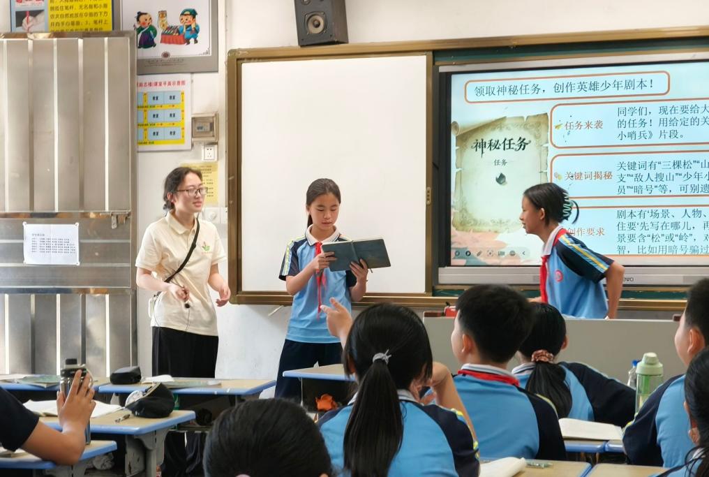 七月十九日,华南师范大学言途实践团赴广东省惠州市博罗县柏塘镇中心小学开展实践活动。为深化青少年爱国主义教育,队员精心策划以“柏塘红韵·剧笔少年”为主题的红色剧本创作与宣传课程,通过沉浸式教学引导乡村学子触摸革命历史、传承红色基因。(赖佳琪 黄钰婷)