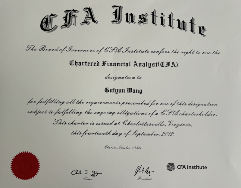 此外,他先后获得CFA®特许金融分析师、FRM®金融风险管理师及CFTA®国际金融科技分析师认证三项国际金融领域的权威核心资格,成为业内少有(全球不足1000人)的高端复合型黄金人才。