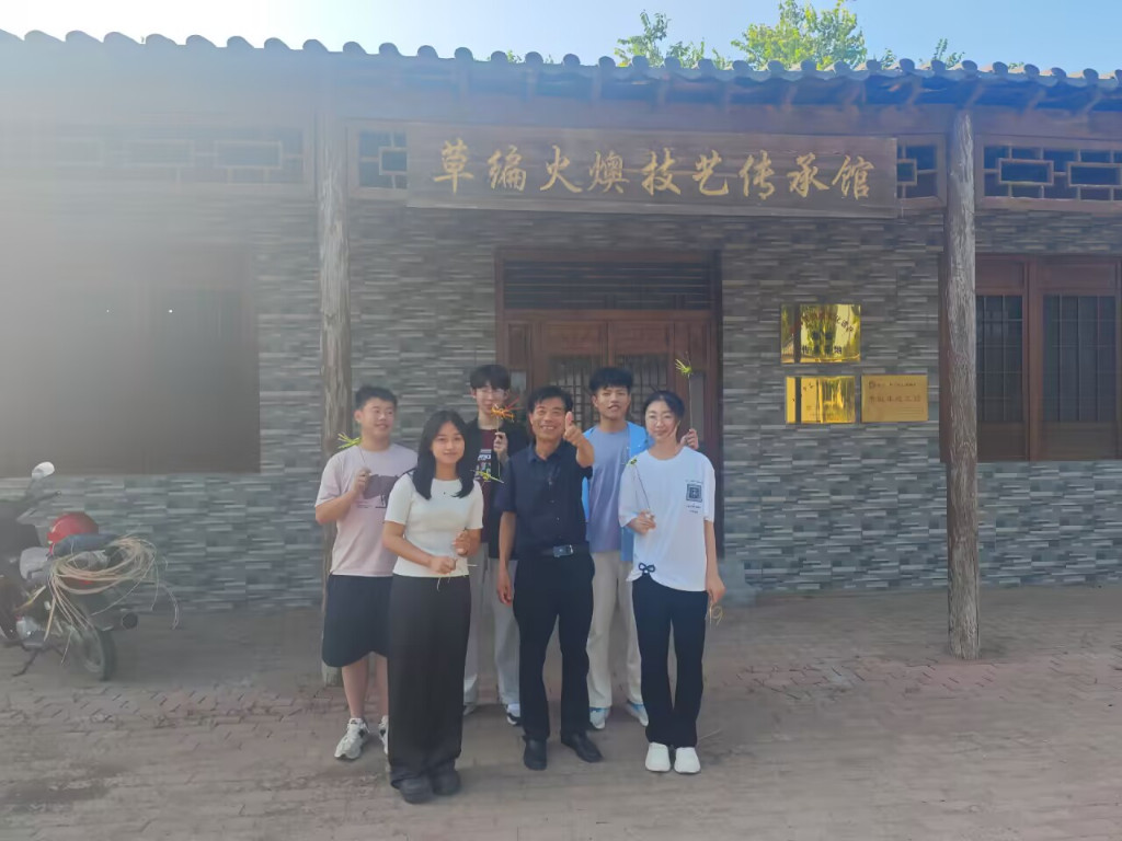 (图2“探忆黄河行”暑期“三下乡”社会实践团与黄河口草编传承人张奎善老师合影)