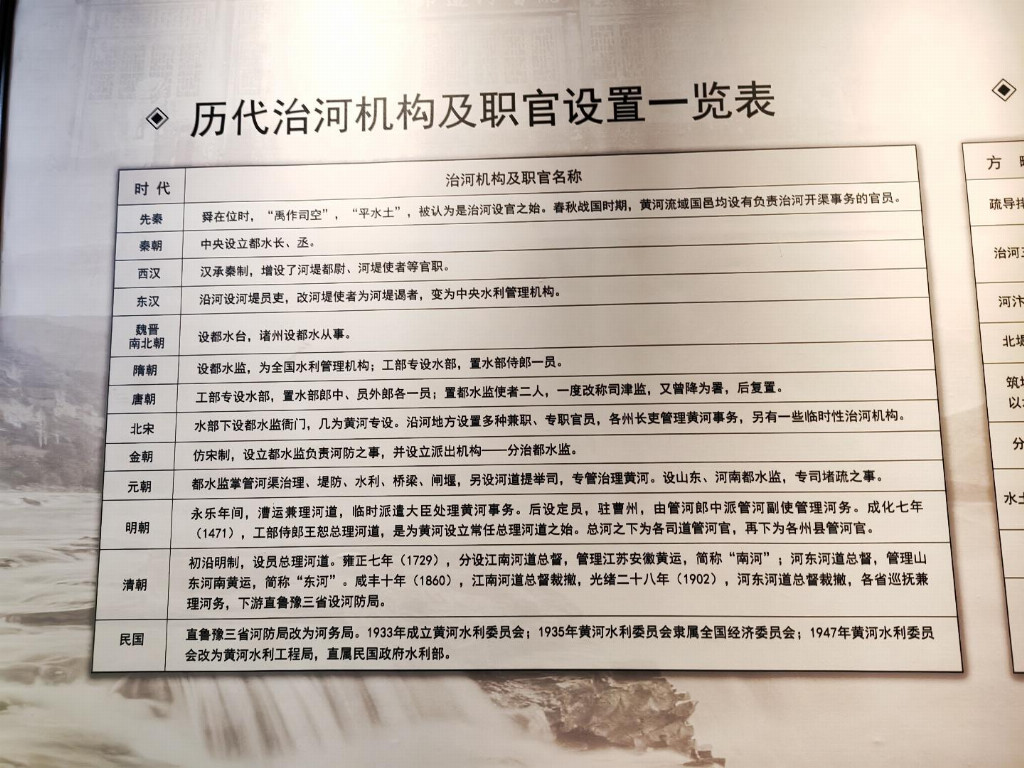 在"历代治河机构"展陈前,实践团成员驻足良久。历代治河机构及职官设置的展示区,像是一部厚重的治河史志,摊开在世人面前,从先秦治河官员的初步尝试,到唐宋时期精细化的职官体系,这些非生态的文化遗产,守护着黄河文化的历史根脉,这张跨越千年的"治河路线图",是黄河文化生生不息的见证,更是人们应对黄河挑战的智慧传承。实践团成员郭禄存同学感叹:"这些竹简上的官职名称,不仅是历史符号,更是先民智慧的结晶。"每一处治河成败的经验,都化作文化基因,提醒人们黄河保护需要现代科技,更离不开对传统的敬畏;黄河守护,不仅要守护她的生态,更要守护她所承载的千年文化记忆。