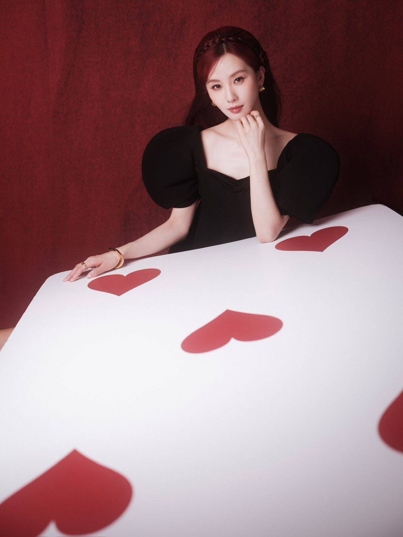 如果说红毯造型是优雅浪漫的代名词,那么刘诗诗的内场造型则充满了创意与个性。内场晚宴她换上了Celine的2026春季系列,这套造型极具未来感,纯黑简约的长裙却尽显矜贵,配上出发图时的棋盘格元素与巨型扑克图案,巧妙的融合让人仿佛置身于异次元空间,充满了魔术剧场的奇妙色彩。